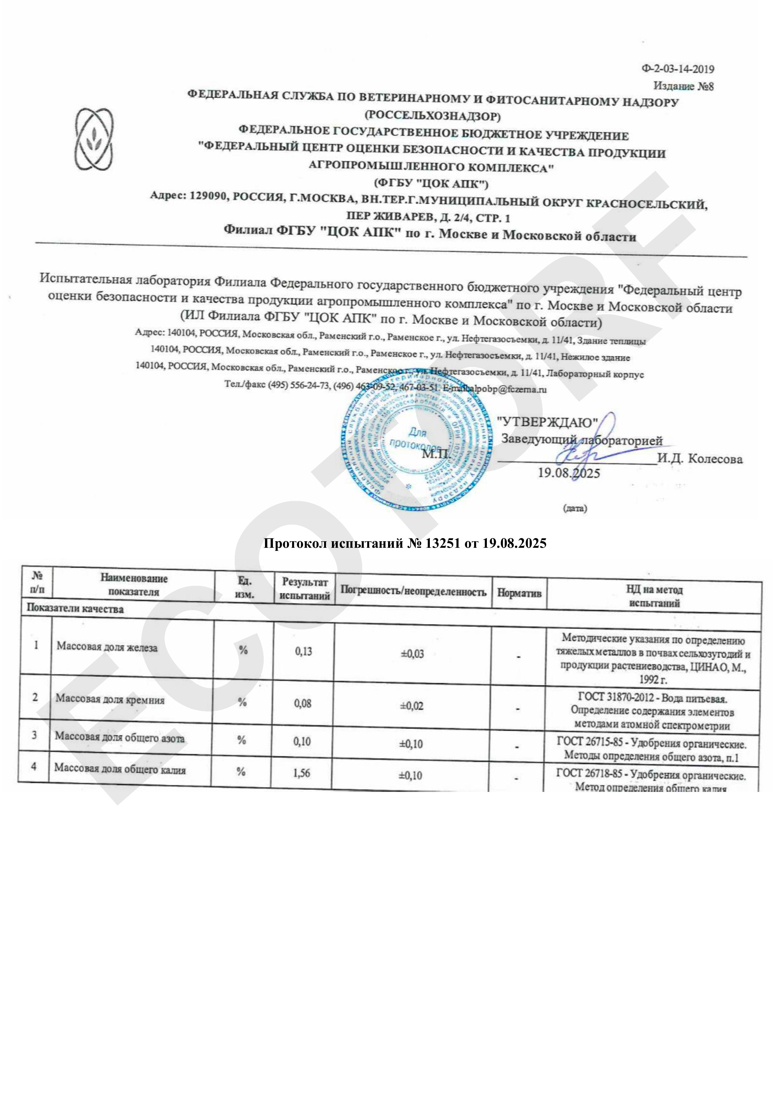 КАЧЕСТВО ПОДТВЕРЖДЁННОЕ АНАЛИЗАМИ